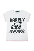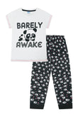 Perfect for girls who love cheeky and adorable designs, this long pyjama set features a "Barely Awake" slogan with a cute panda print on the front of the top, paired with matching elasticated long bottoms for cosy comfort.