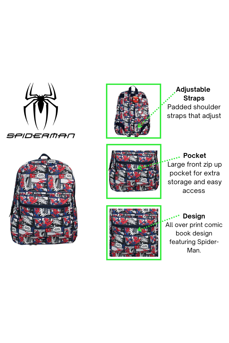 Official Spiderman Backpack with Comic Book Style Design – School Bag for Boys and Girls