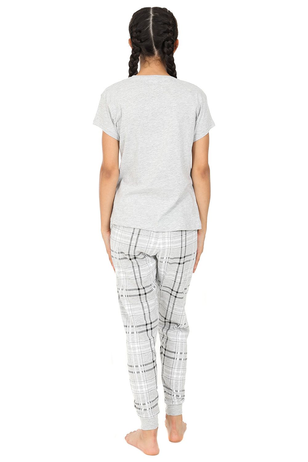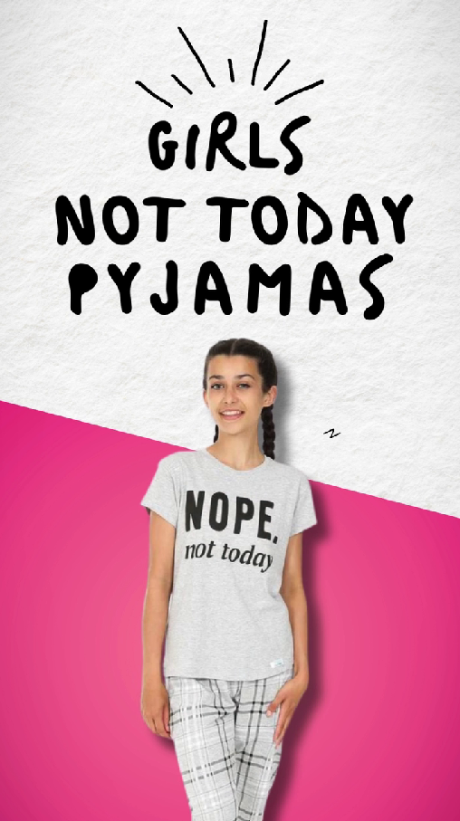 Perfect for girls aged 7-16, these cheeky long pyjamas feature a soft grey short-sleeved top with a fun “Nope Not Today” print and stylish check-patterned long bottoms. Made from 100% quality cotton, they offer comfort and breathability for a cosy night’s sleep.
