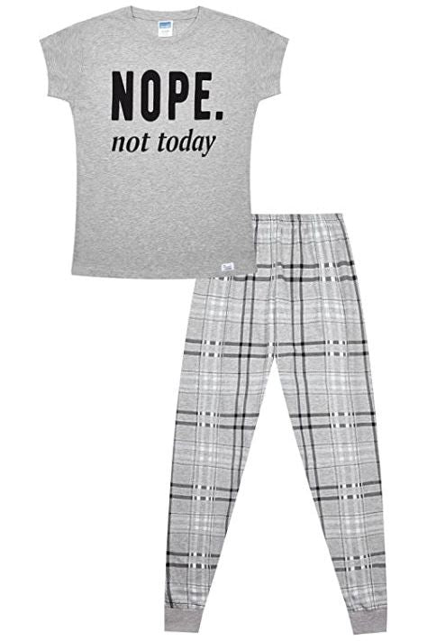 Girls Cheeky Nope Not Today Pyjamas Grey Check Long PJs