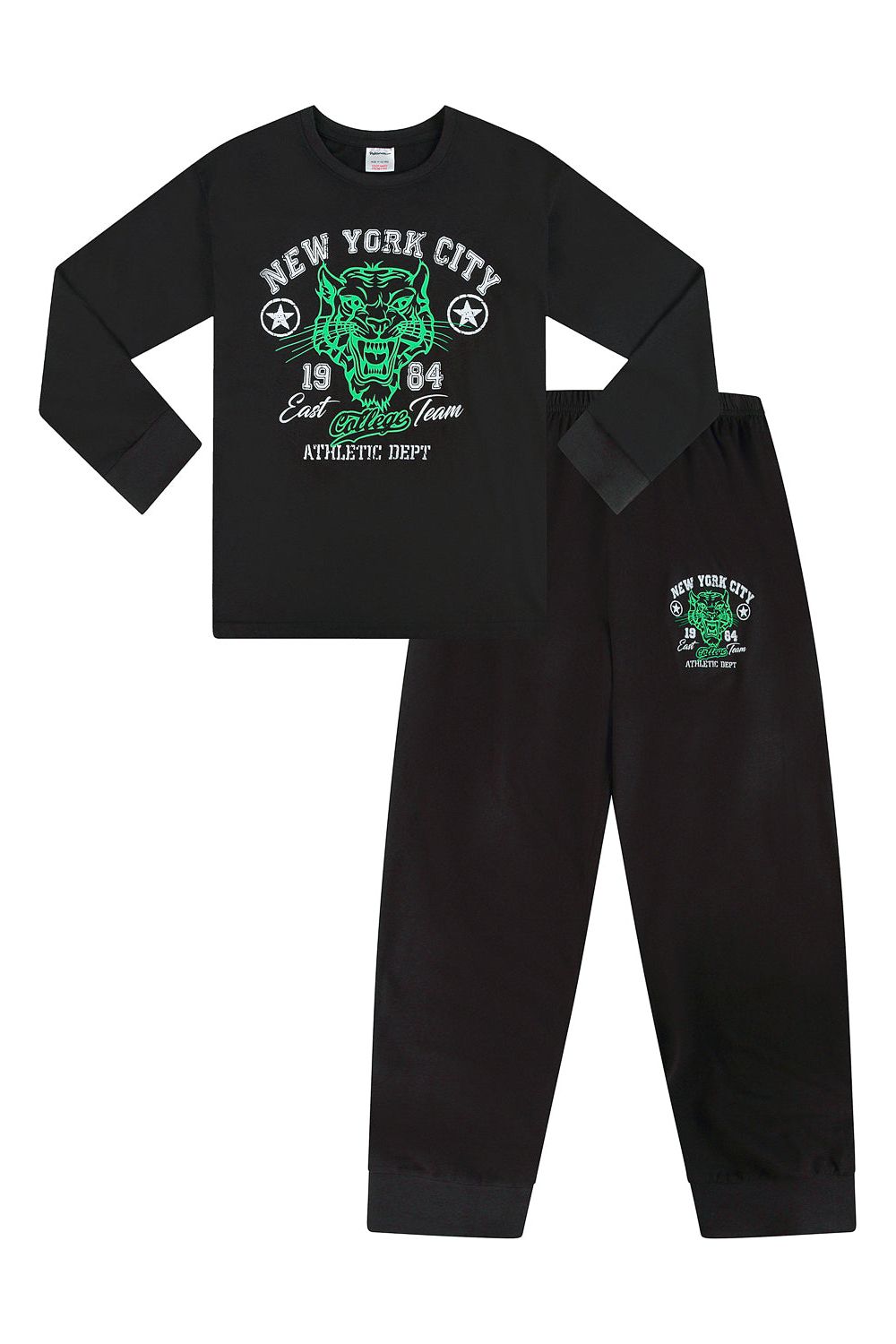 Boys New York City Tiger College Pyjamas Black and Green Long PJs