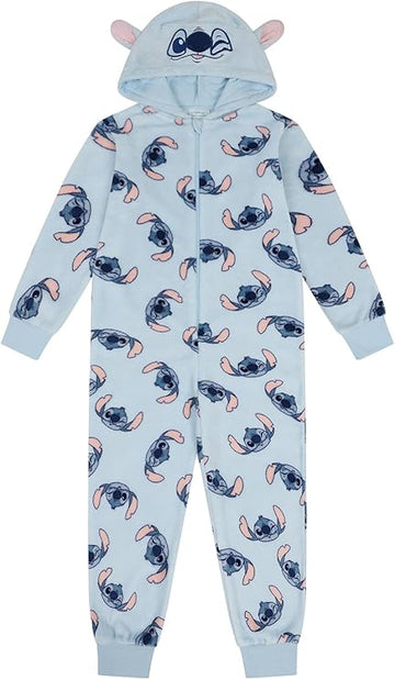 Lilo & Stitch Girls Fleece Sleepsuit – Disney Character Sleepsuit with All-Over Stitch Print