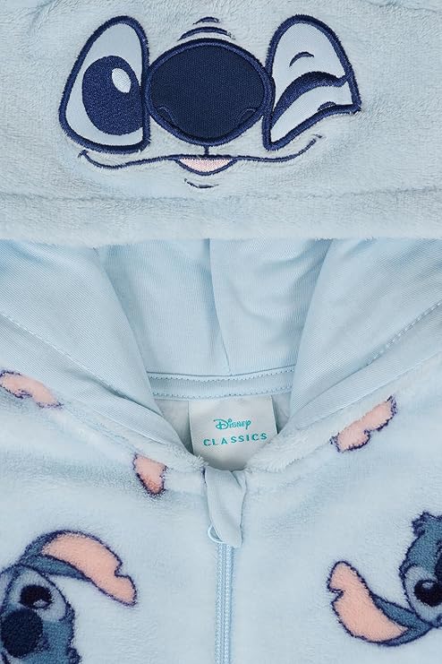 Girls Disney Stitch 3D Hooded Blue Fleece Sleepsuit