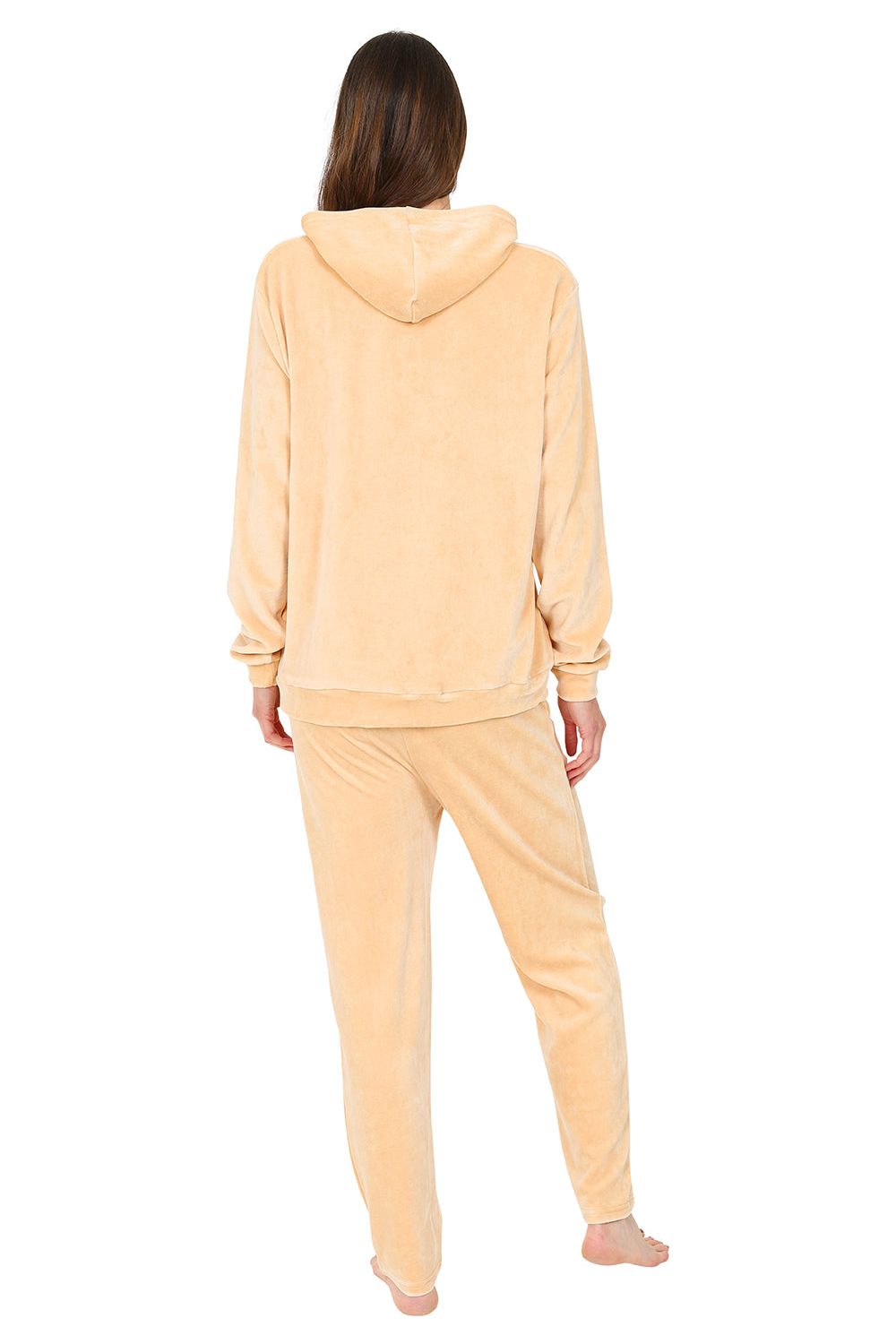 Perfect for cosy evenings, this girls’ gold velour lounge set features a pull-on hooded long-sleeved top and matching long bottoms with an elasticated waistband for a comfortable fit.