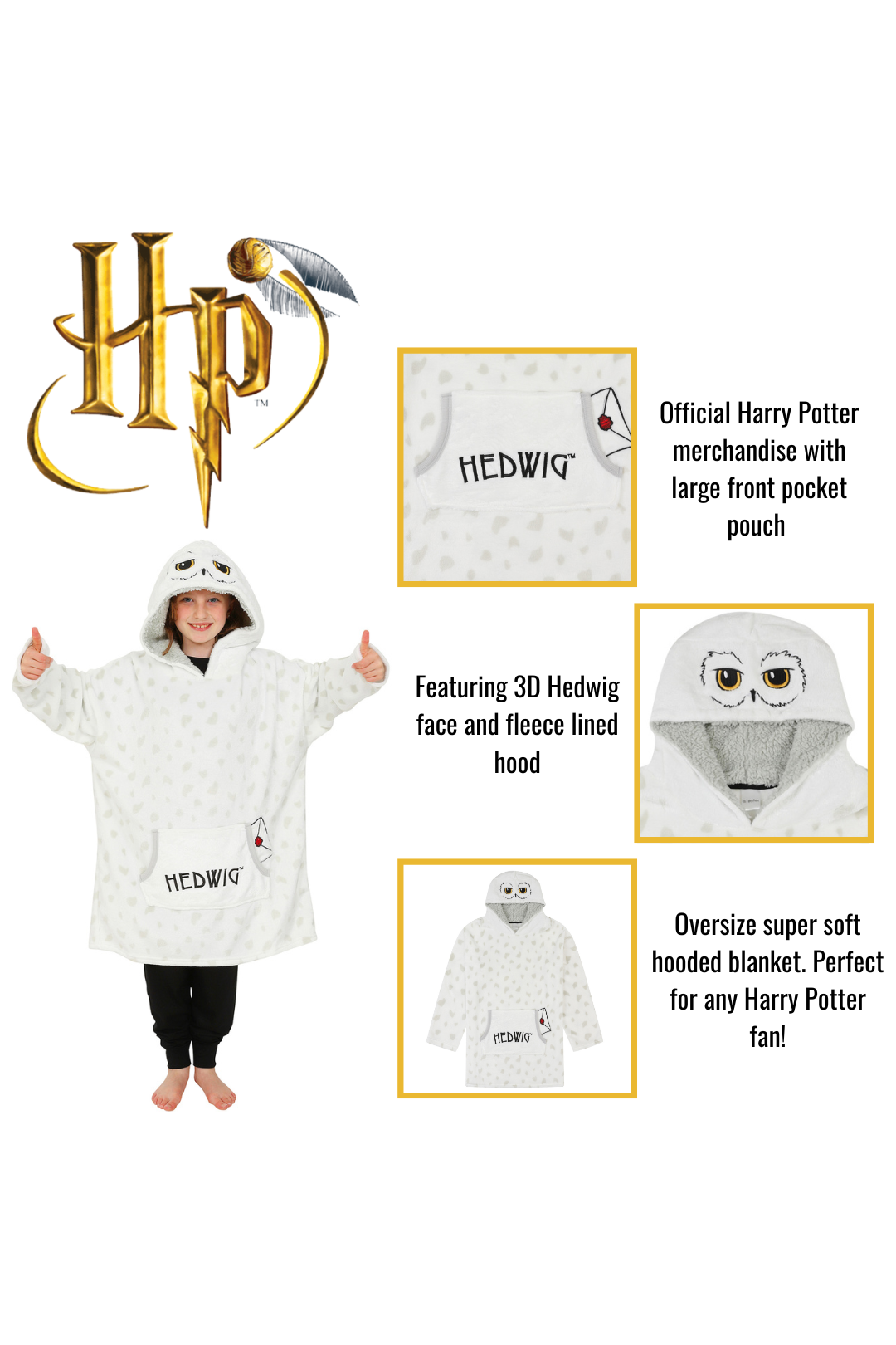 Girls Harry Potter Hedwig White Oversized Hoodie Blanket One Size Hooded Fleece