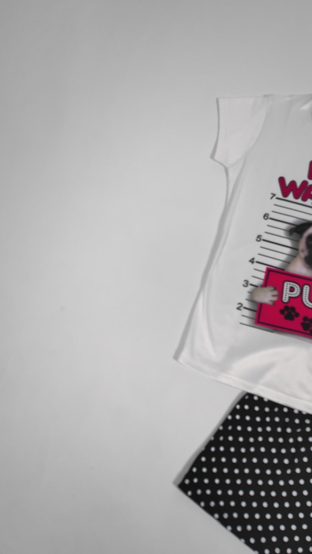 Perfect for girls who love cheeky and cute designs, this short pyjama set features a playful "Most Wanted Pug" slogan with a cute prison “pug-shot” print on the front of the top, paired with matching elasticated shorts for comfort.